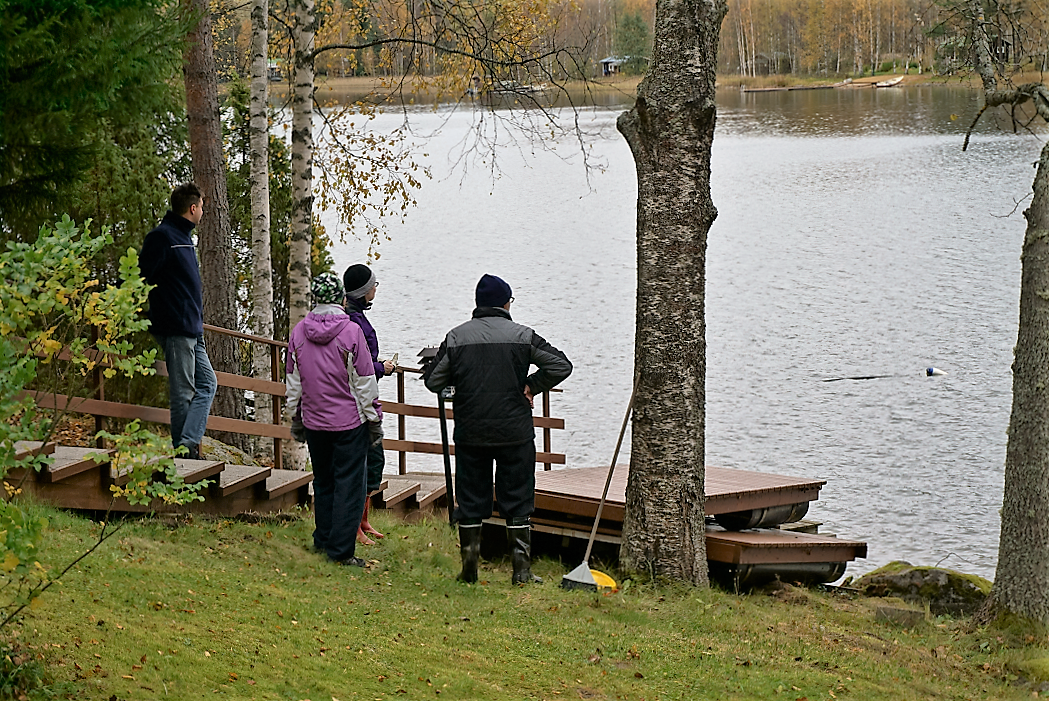 * kesämökin laiturin ja veneen nostamista maihin